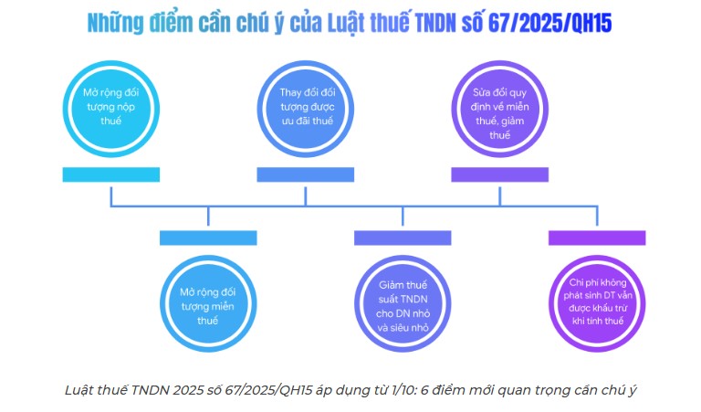 Luật thuế thu nhập doanh nghiệp số 67/2025/QH15 chính thức có hiệu lực từ ngày 01/10/2025 và 6 điểm mới cần lưu ý