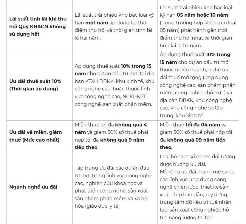 Luật thuế TNDN 2025 đã loại bỏ một số lĩnh vực khỏi danh mục ưu đãi thuế, cụ thể:
