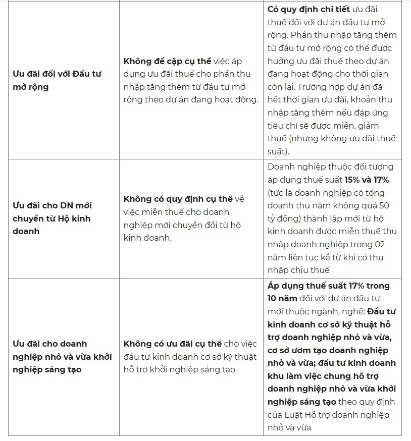 - Ưu đãi thuế cho dự án đầu tư mở rộng: