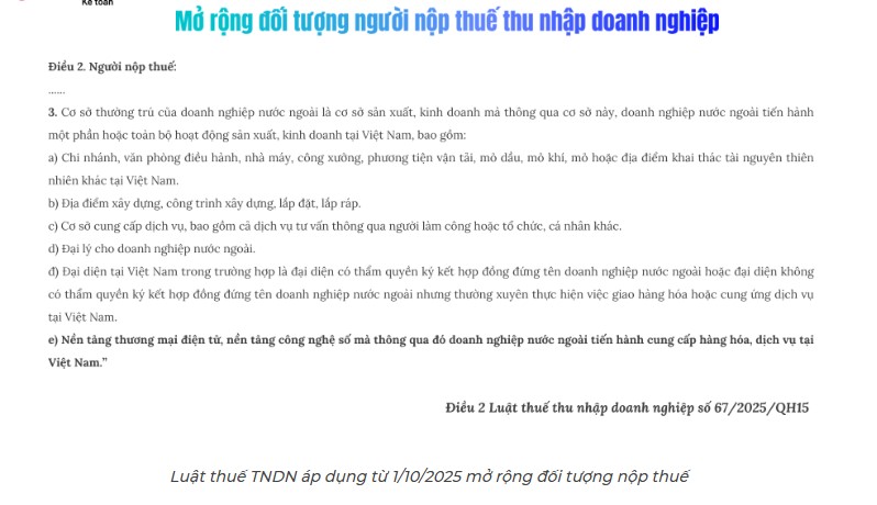3.1. Luật thuế thu nhập doanh nghiệp từ 01/10/2025 mở rộng đối tượng nộp thuế