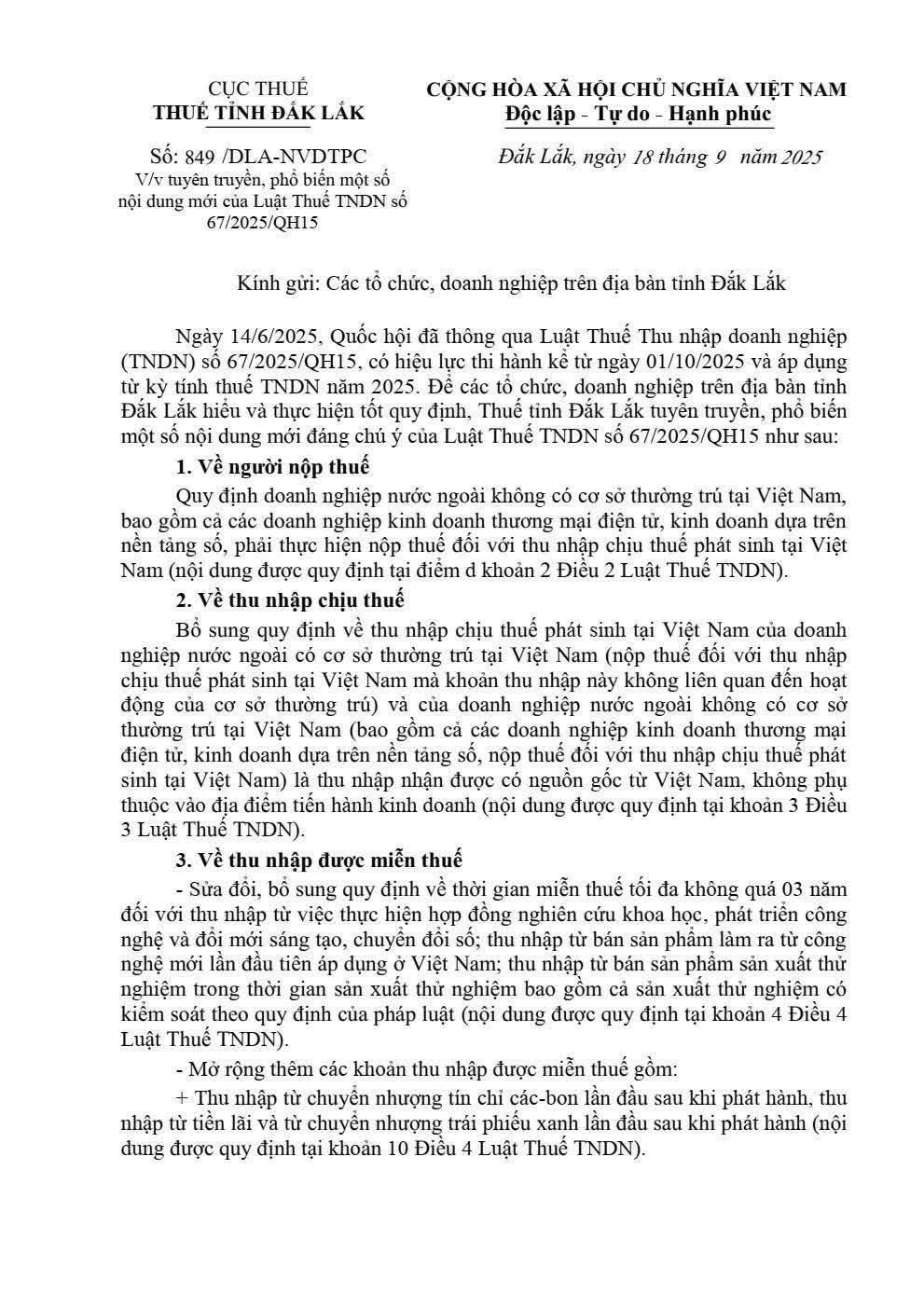 Luật thuế thu nhập doanh nghiệp số 67/2025/QH15 chính thức có hiệu lực từ ngày 01/10/2025 và 6 điểm mới cần lưu ý (2025-10-02 01:30:34)