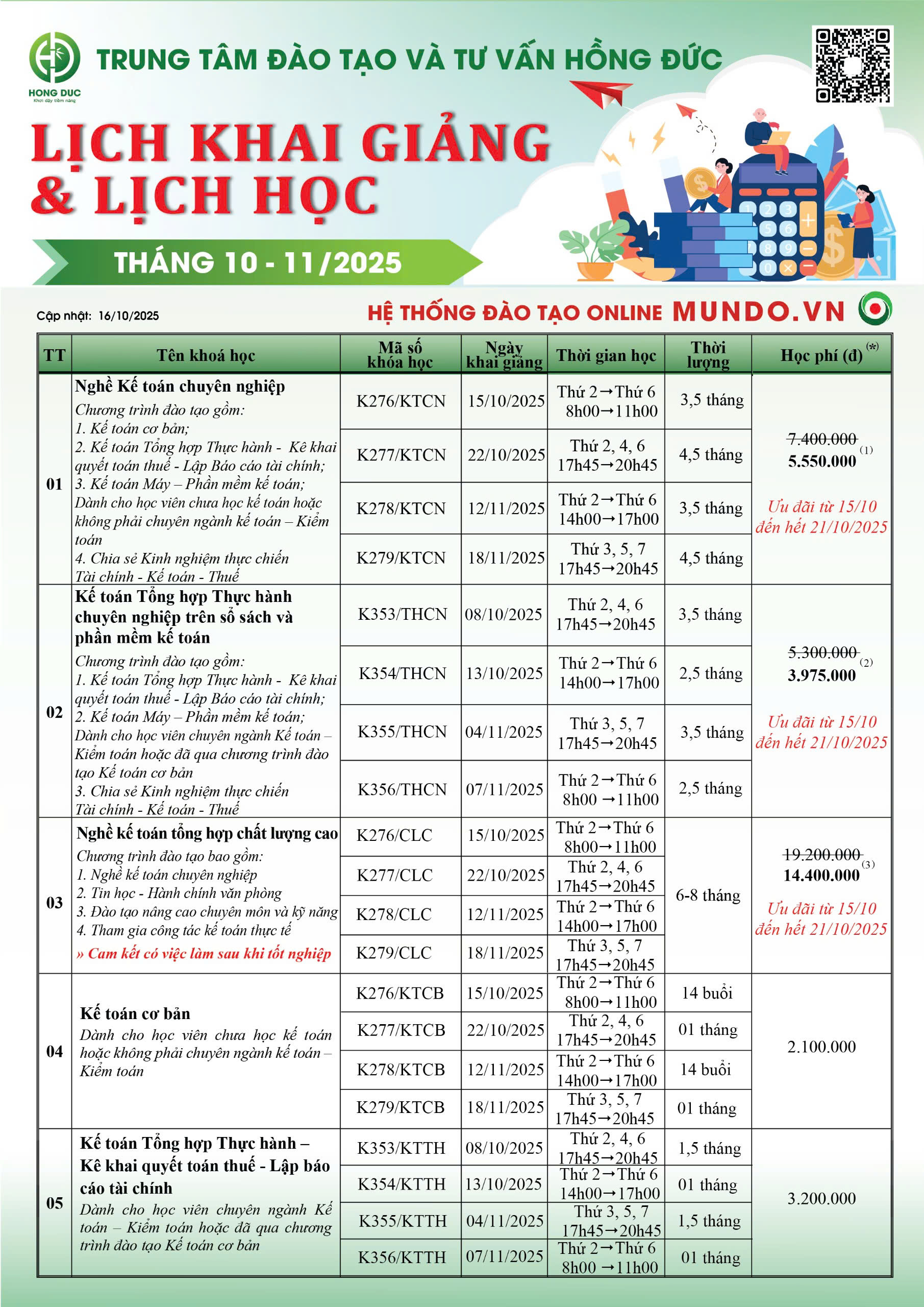 Lịch khai giảng tháng 11 & 12/2025 (2024-02-15 01:15:17)