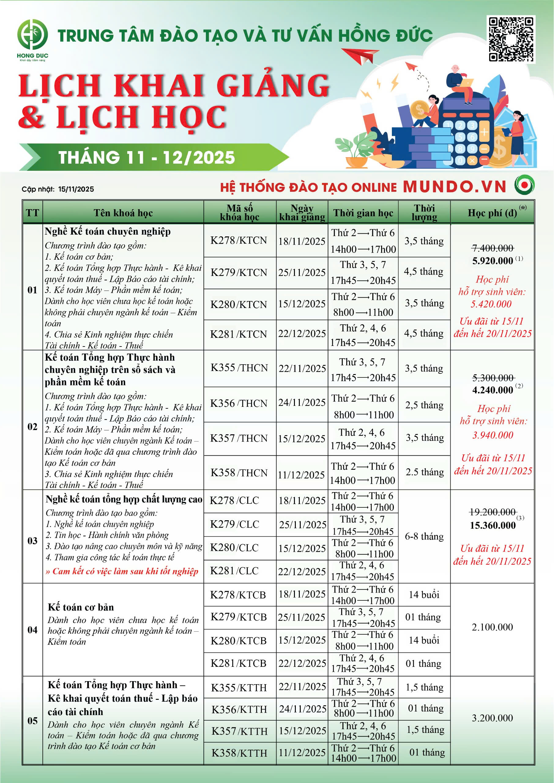Tháng 11 này, hãy biến mục tiêu nghề nghiệp thành hiện thực với ưu đãi 20% học phí cho các khóa Kế toán - Tài chính thực hành tại Hồng Đức.
