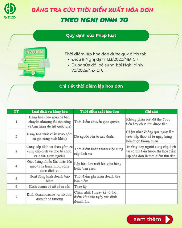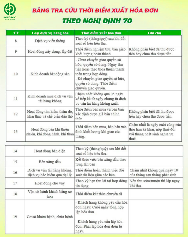 BẢNG TRA CỨU THỜI ĐIỂM XUẤT HÓA ĐƠN THEO NGHỊ ĐỊNH 70